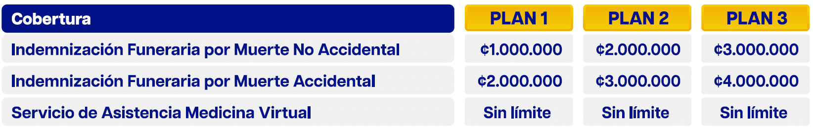 Brinda una indemnización con el fin de hacer frente a los gastos funerarios en caso de fallecimiento de la persona asegurada, sea de forma accidental y no accidental.